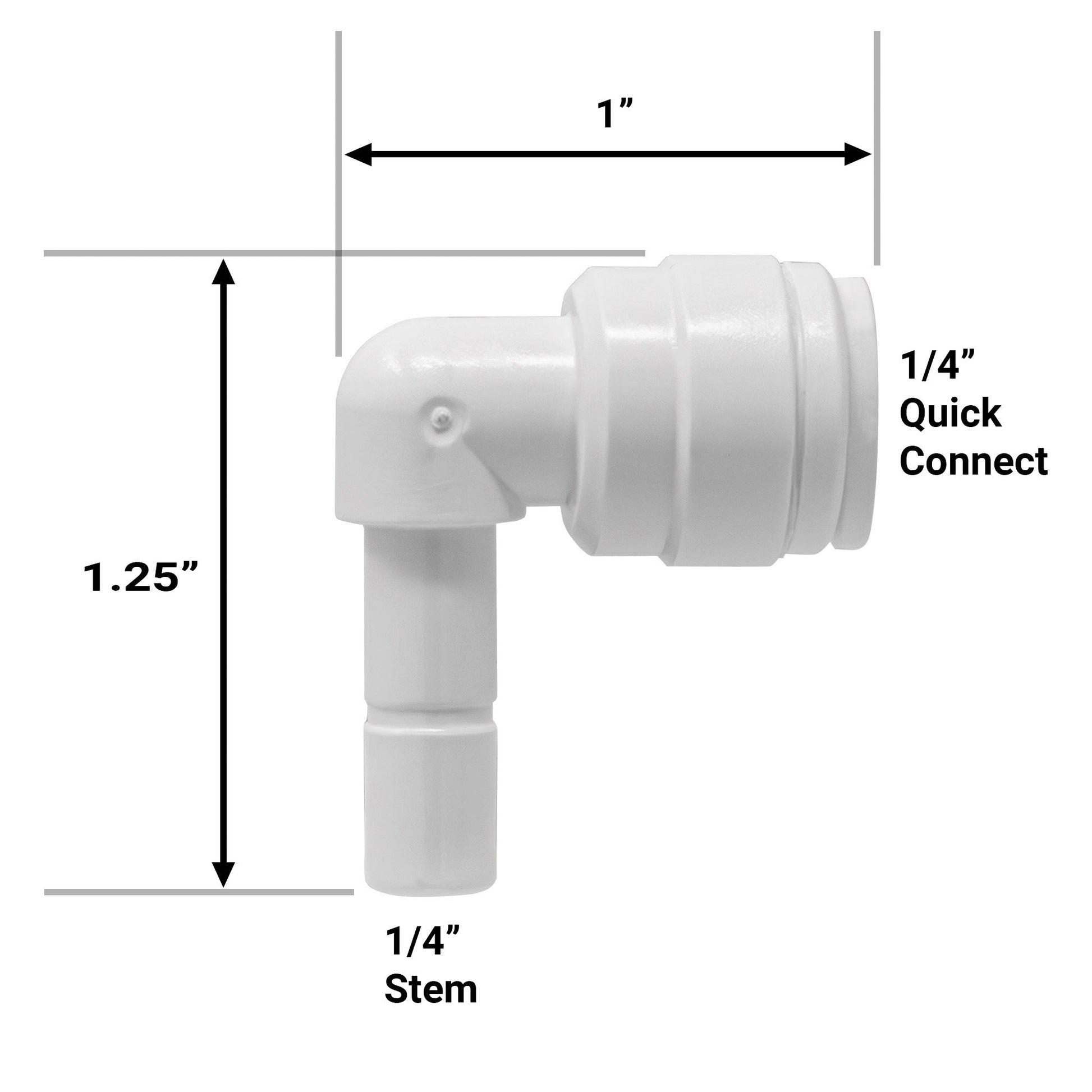 1/4" Quick Connect Stem Elbow for RO Reverse Osmosis Water Filtration System / Replacement Parts / Other Water Appliances 1/4" Quick Connect x 1/4" Stem (10 Pack)