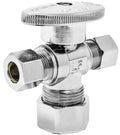 1/4 Turn Straight Dual Outlet Angle Stop 5/8" OD COMP x 3/8" COMP x 1/4" COMP