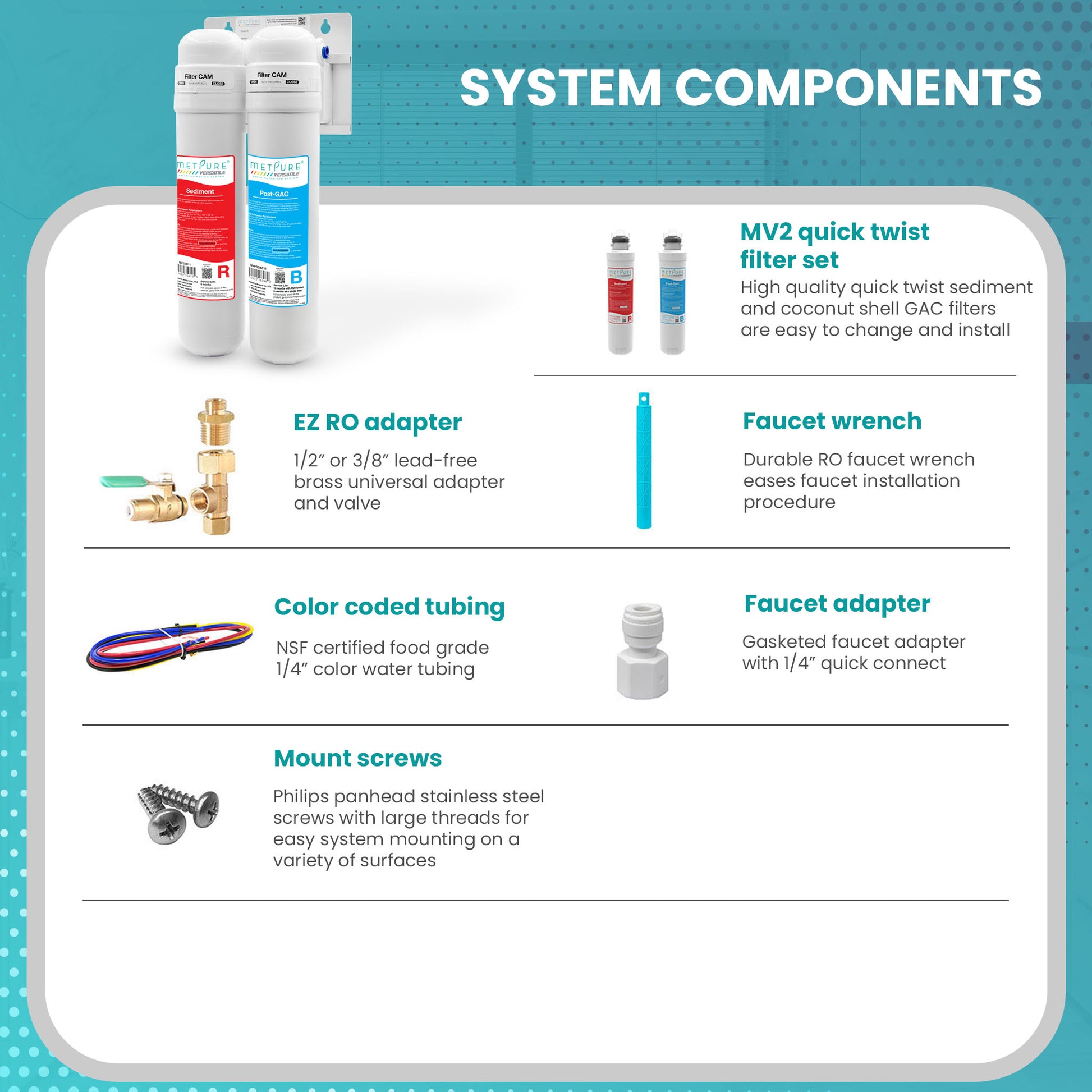 Metpure Versatile Under Sink Water Filtration System | 2 Stage Quick Twist Filter (Easy Change) Space Saver System | Water Purifier For Clean Drinking Water & Simple Set Up | Removes Chlorine Bad Taste & Odor | 2 Stage Filters with Complete Installation Kit and Accessories. RO faucet NOT included. Faucet sold separately.