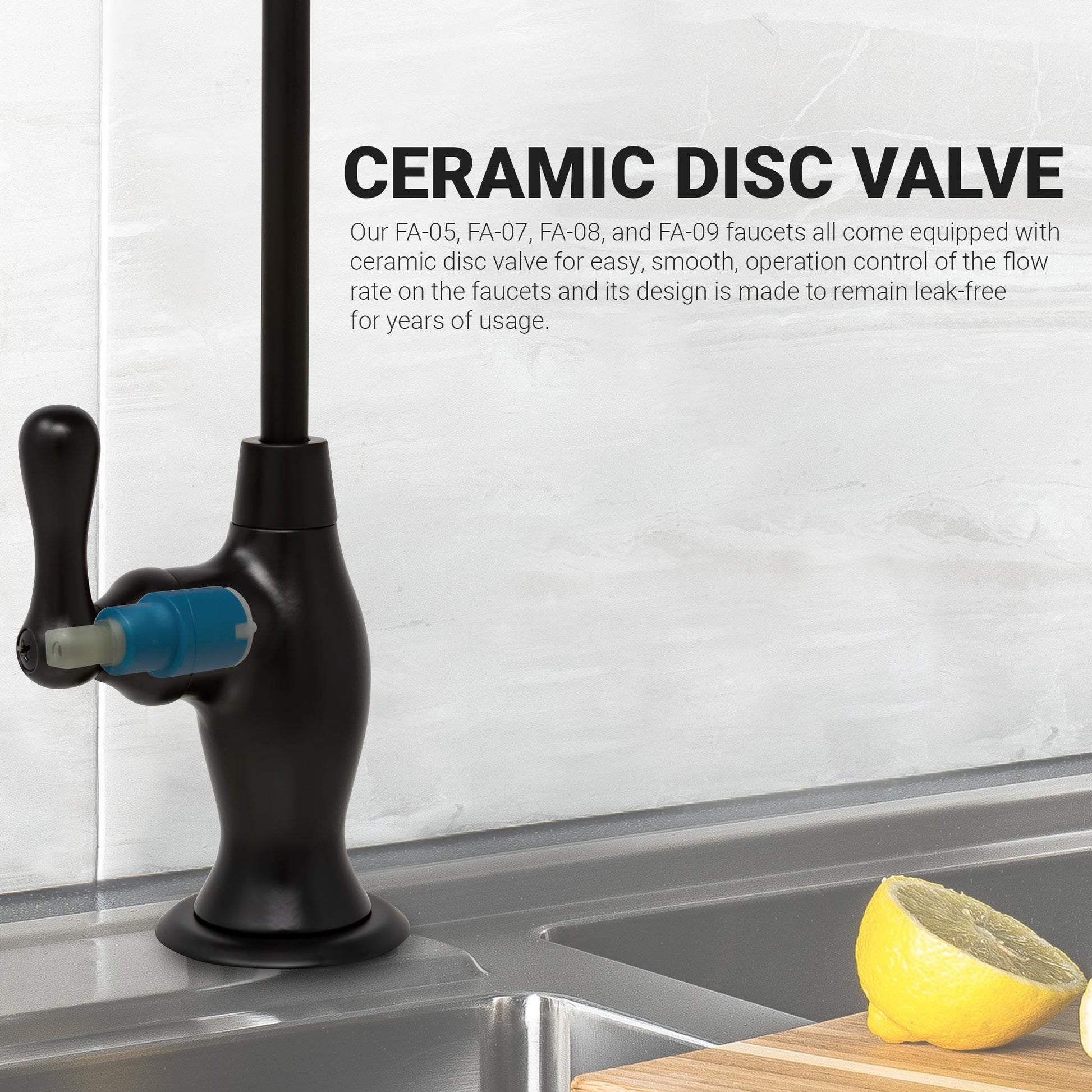 PREMIUM QUALITY: This vase style ceramic disc lever reverse osmosis airgap faucet is crafted with composite zinc exterior for durability and lasting finish. The product passes lead-free material requirement and the solid weight and smoothness can be felt throughout.