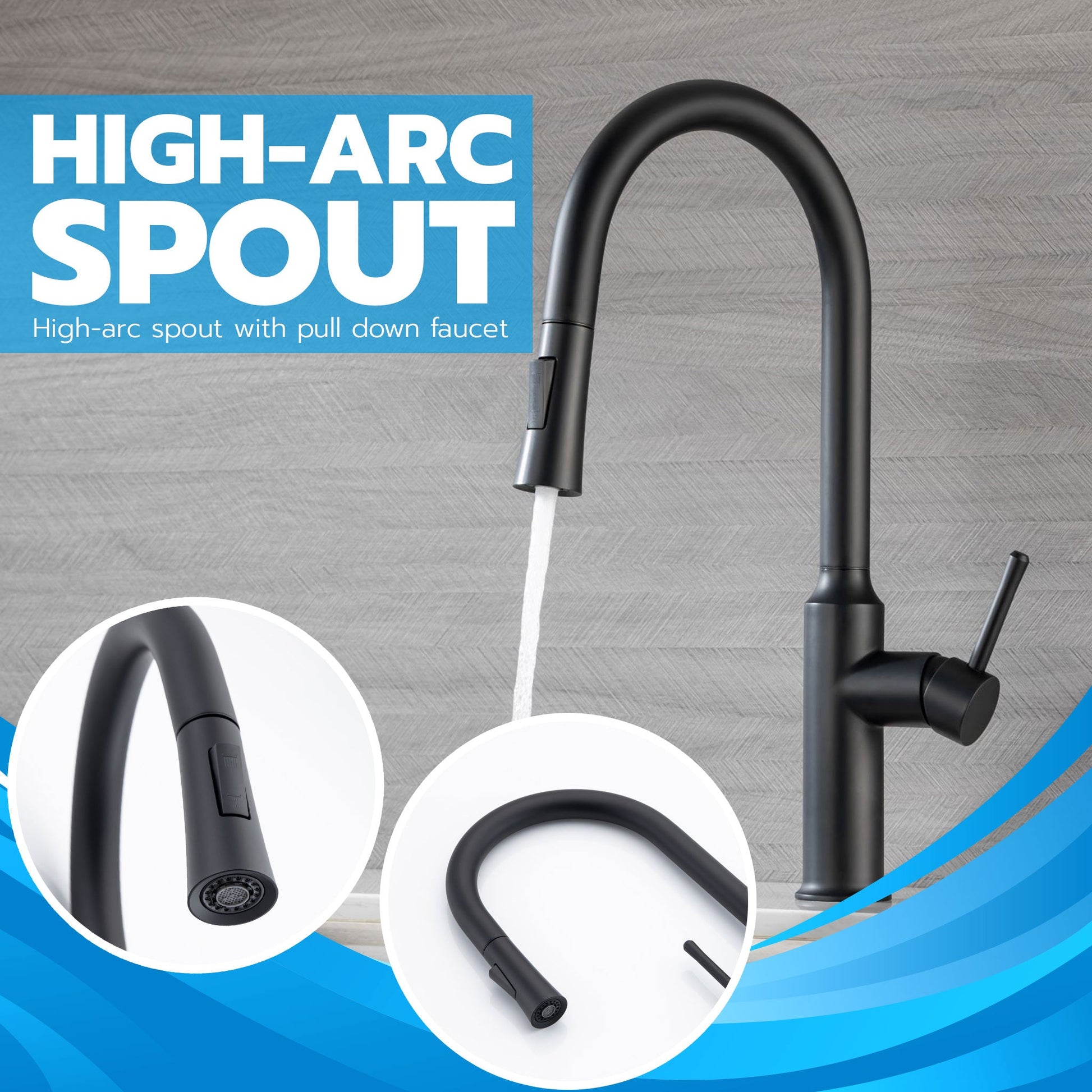 High-Arc Spout: Allows ample room for oversized objects underneath, as well as swivels 360° for a full range of motion.