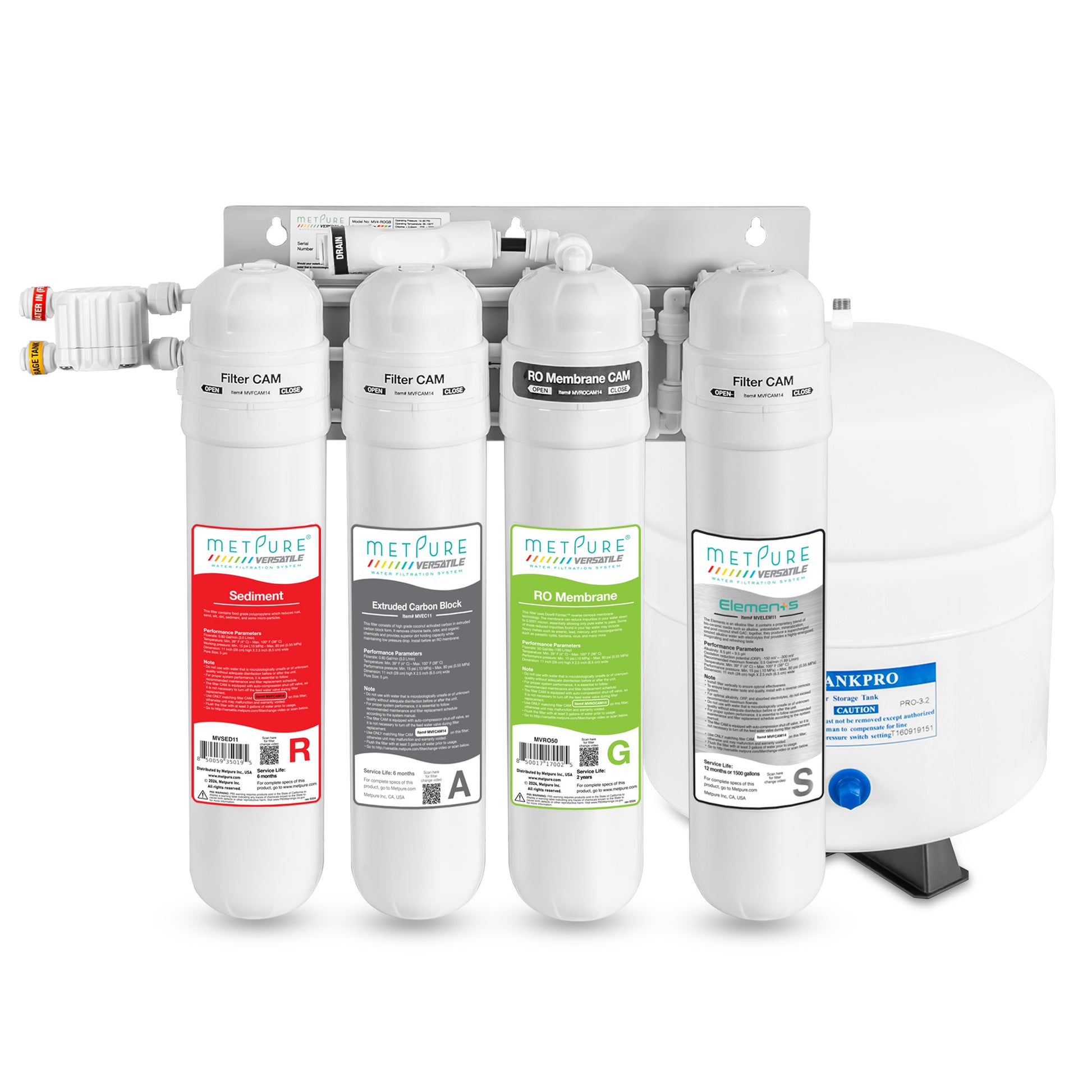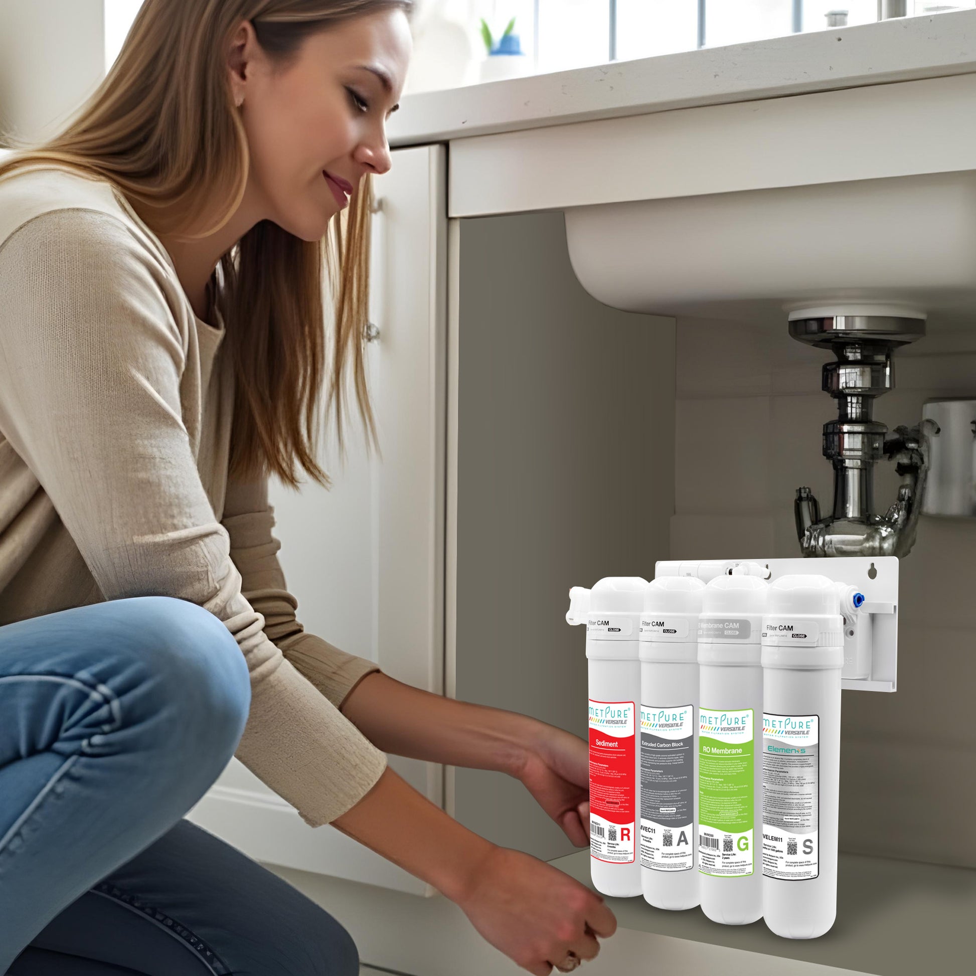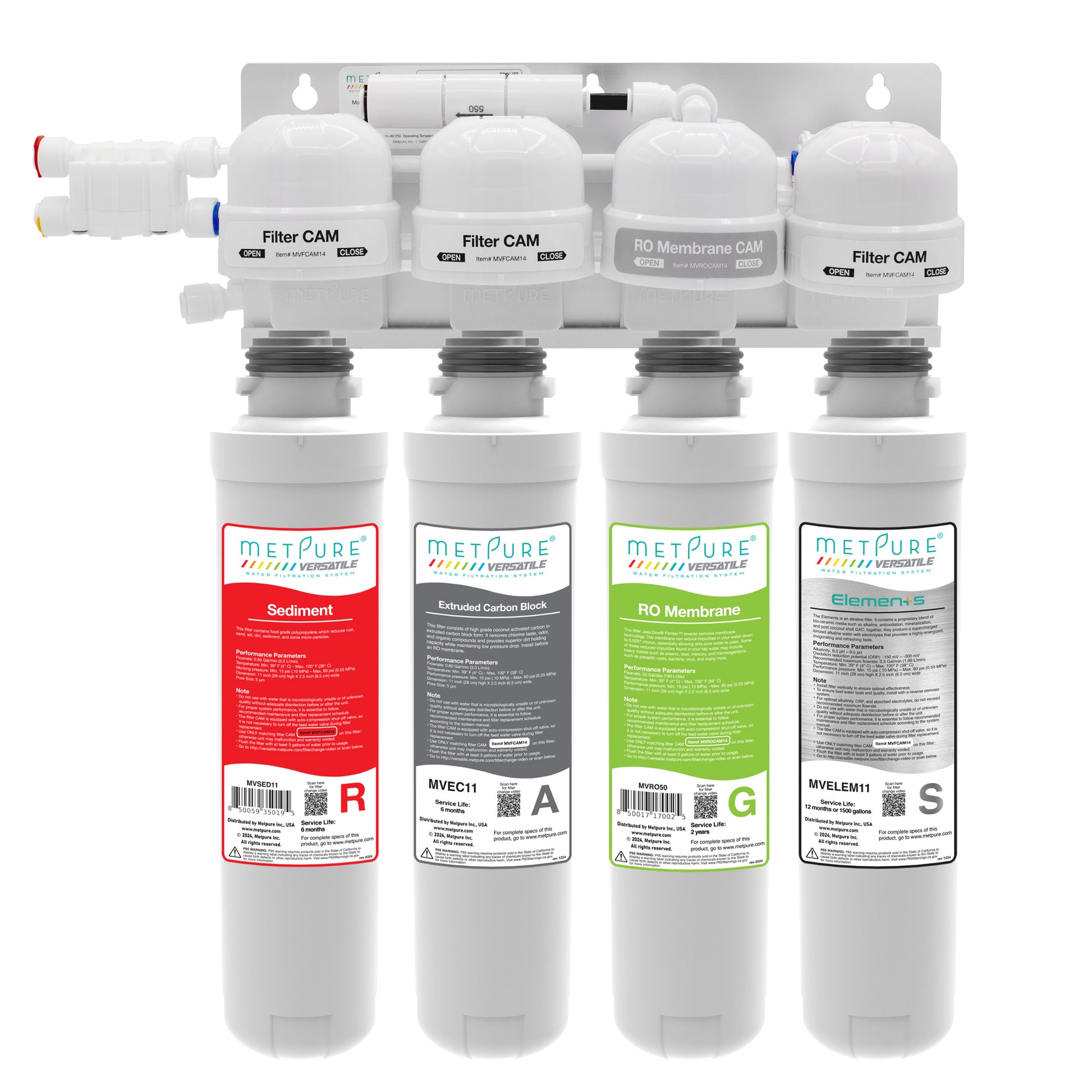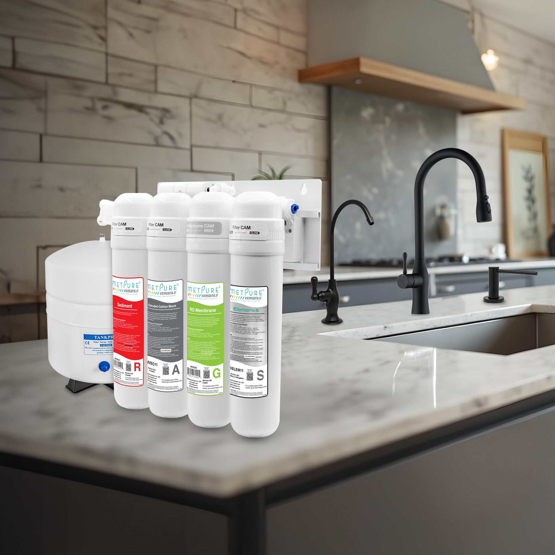The Metpure Versatile quick-twist water filtration system is engineered from the ground up to deliver exceptional water purification, a low-profile footprint, and effortless installation and maintenance. Its open design allows for easy access and part replacement, while the quick-twist filter cartridges make changing filters fast and mess-free. The compact form factor fits neatly under your kitchen sink, providing powerful performance without taking up valuable space.