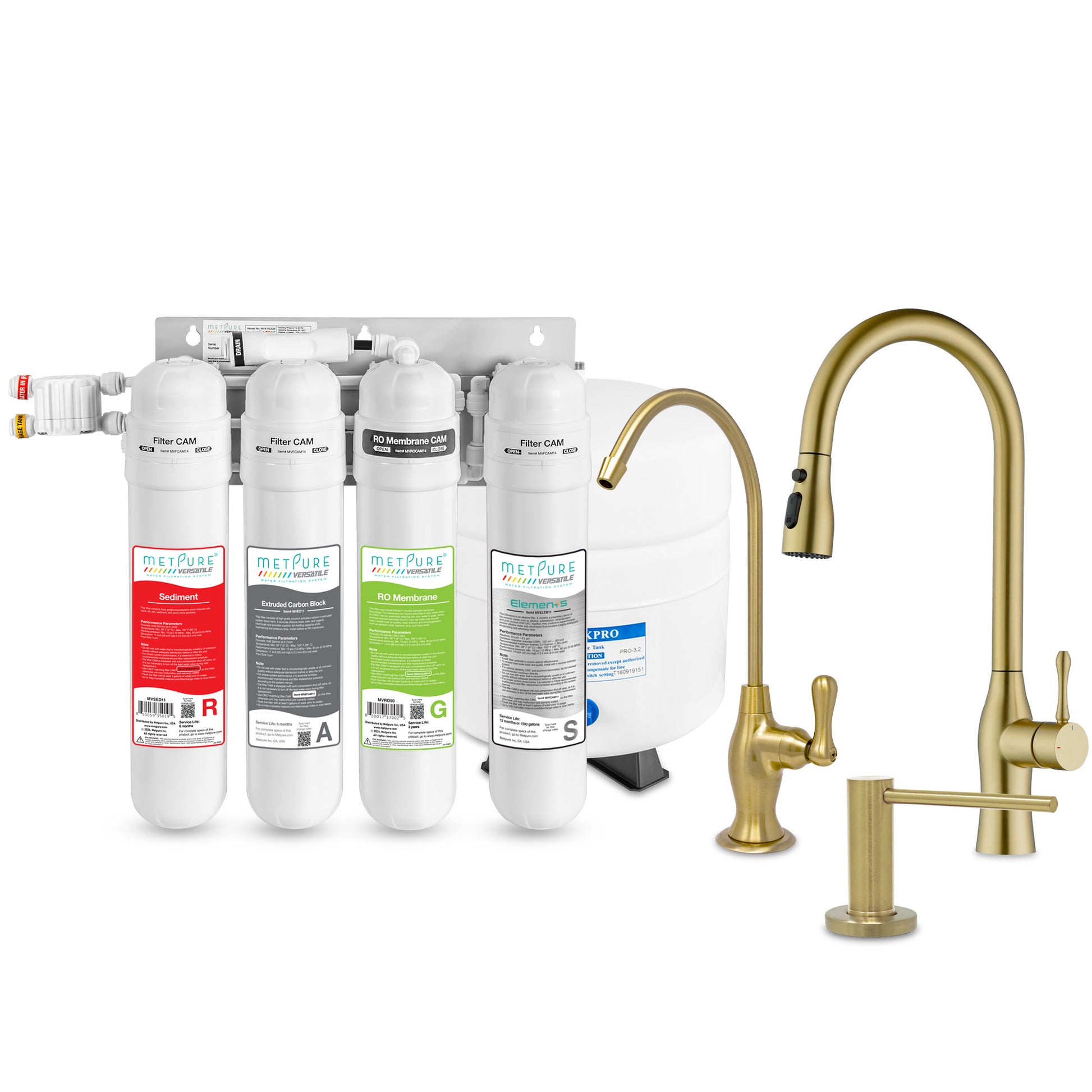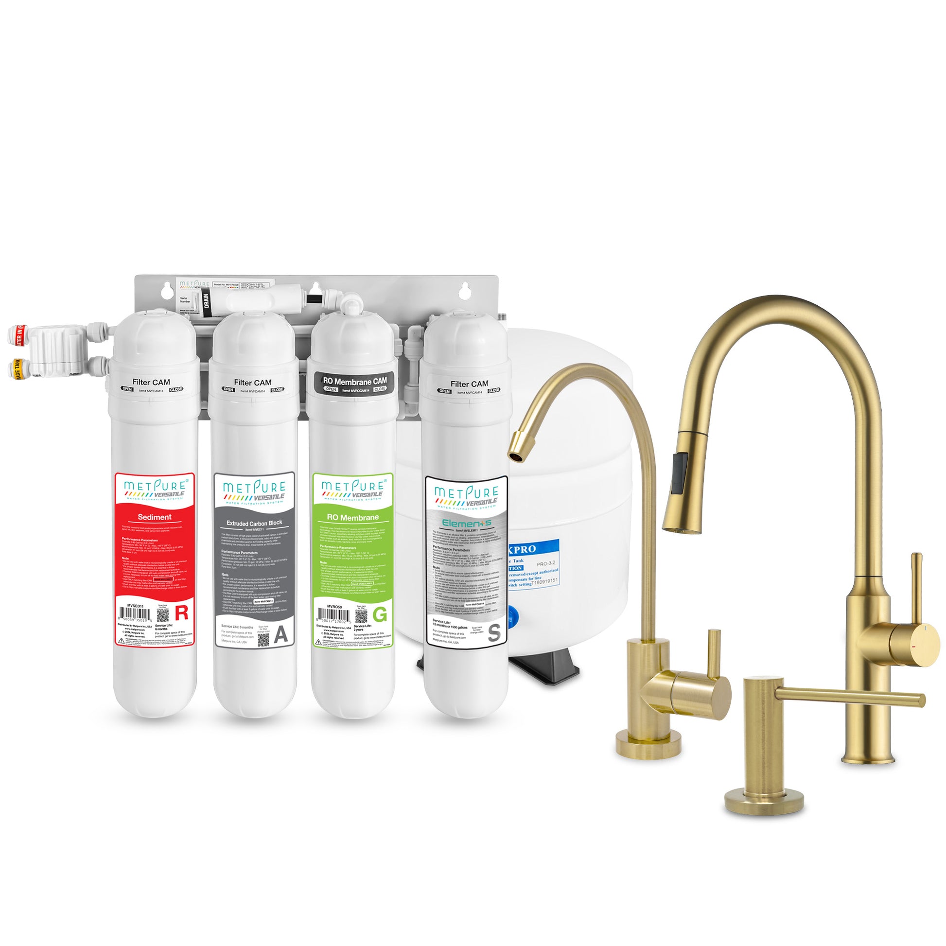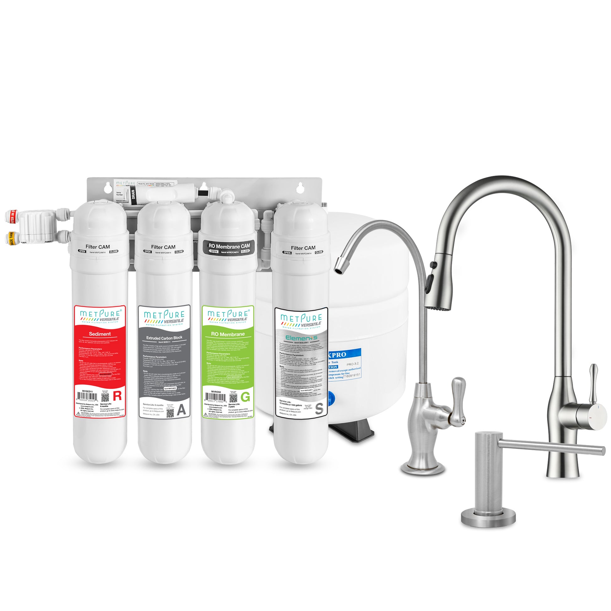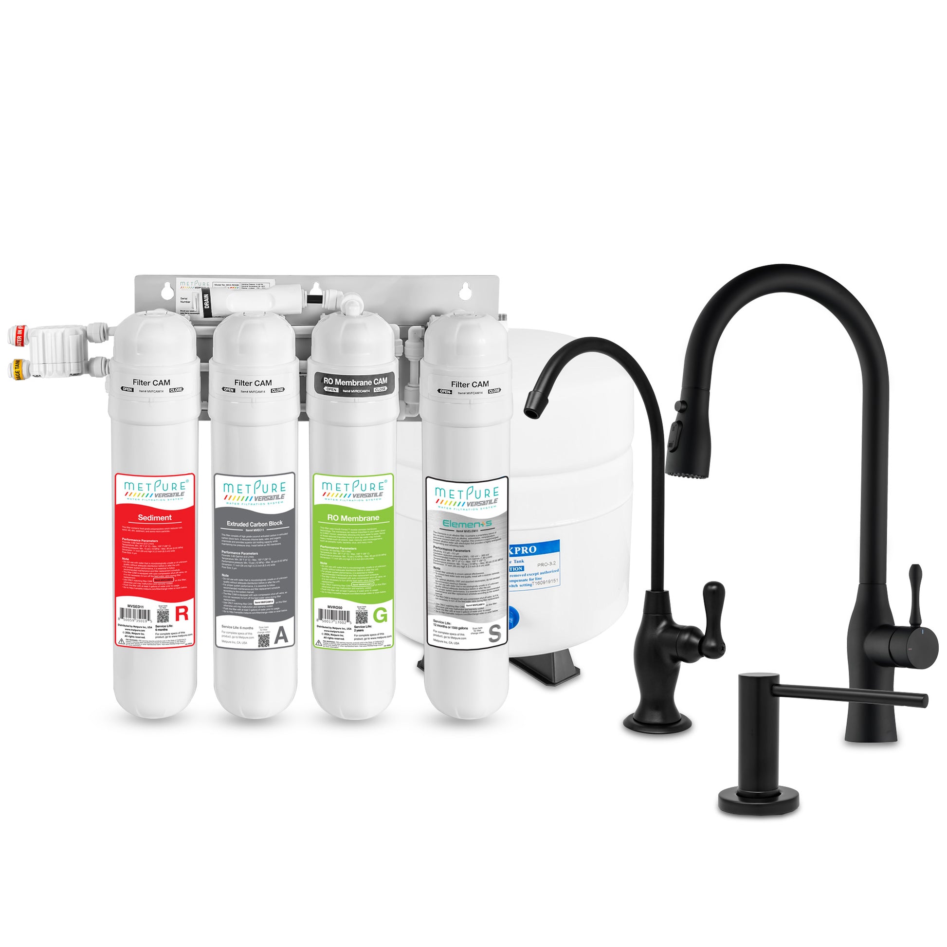 The Metpure Versatile quick-twist water filtration system is engineered from the ground up to deliver exceptional water purification, a low-profile footprint, and effortless installation and maintenance. Its open design allows for easy access and part replacement, while the quick-twist filter cartridges make changing filters fast and mess-free. The compact form factor fits neatly under your kitchen sink, providing powerful performance without taking up valuable space.