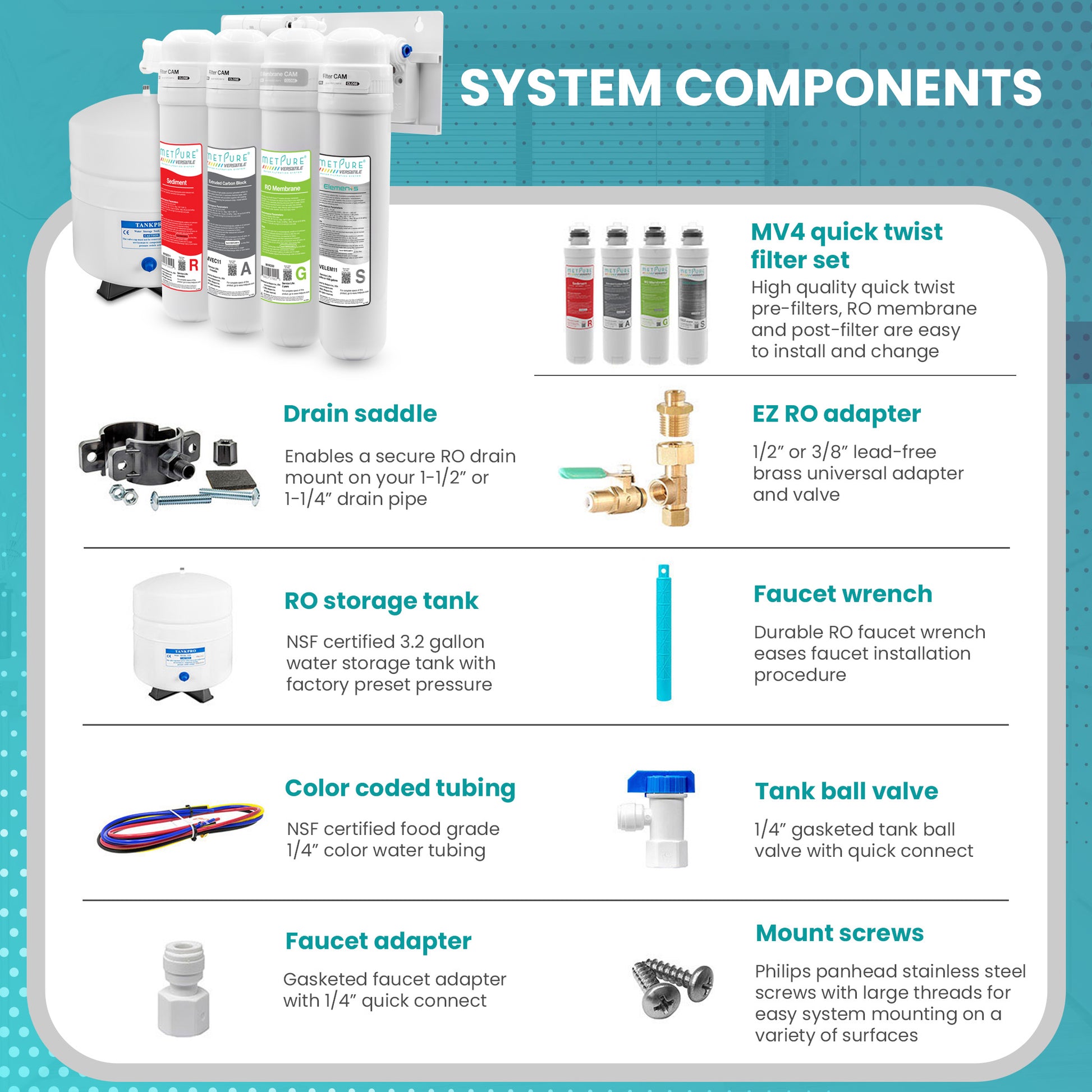 All systems deliver premium water purification through a 4-stage reverse osmosis water filtration process, removing up to 99% of contaminants like lead, mercury, chlorine, and more for clean, safe drinking water