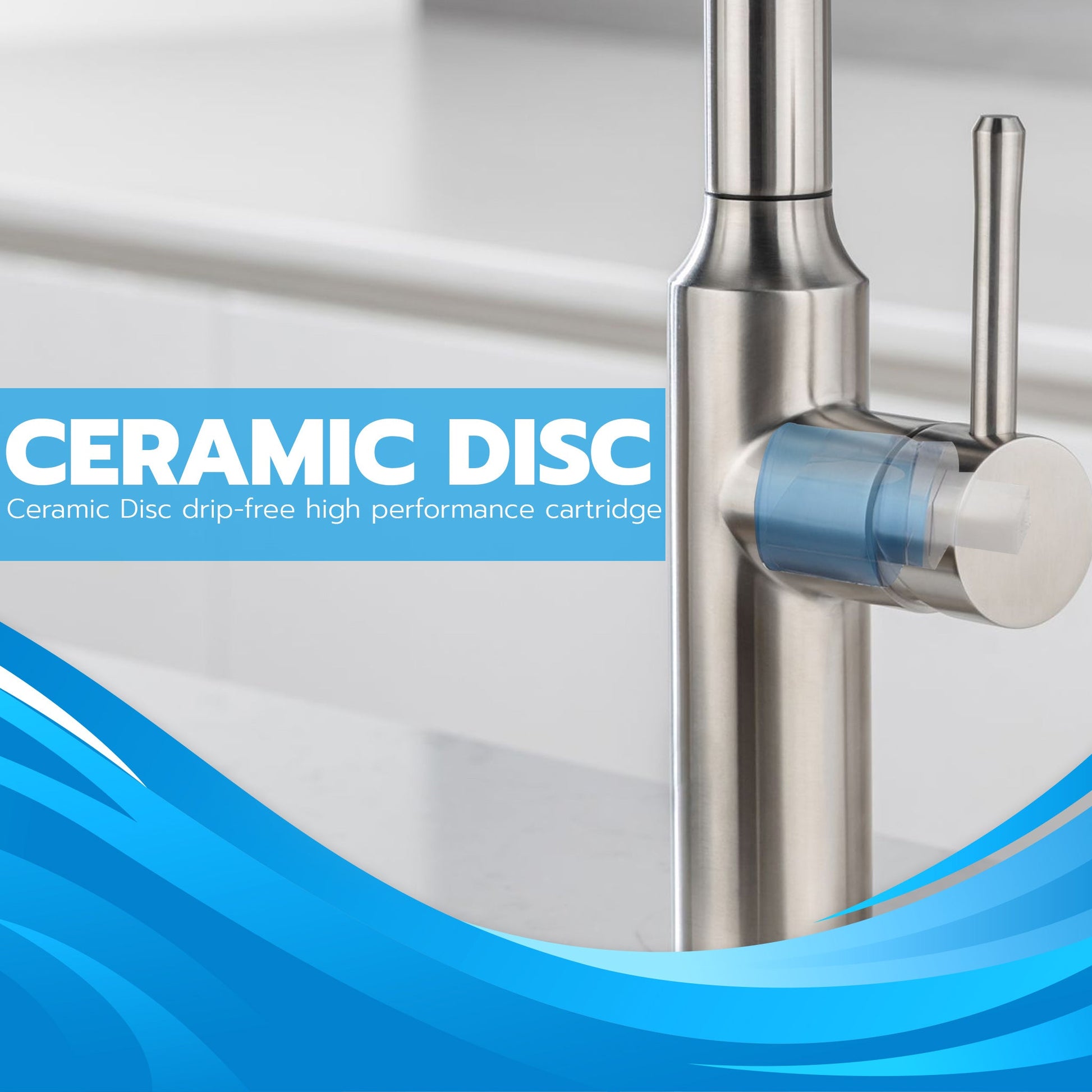 Ceramic Disc Valve: Ensures a drip-free, durable, long lasting faucet use.