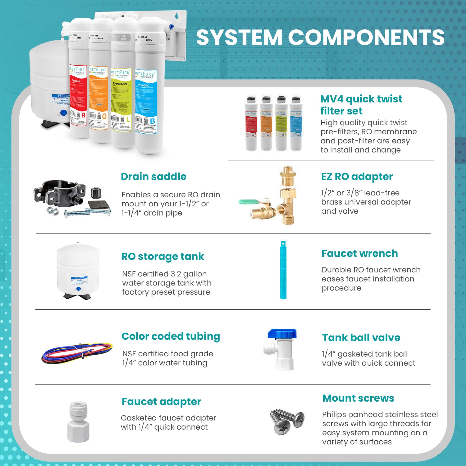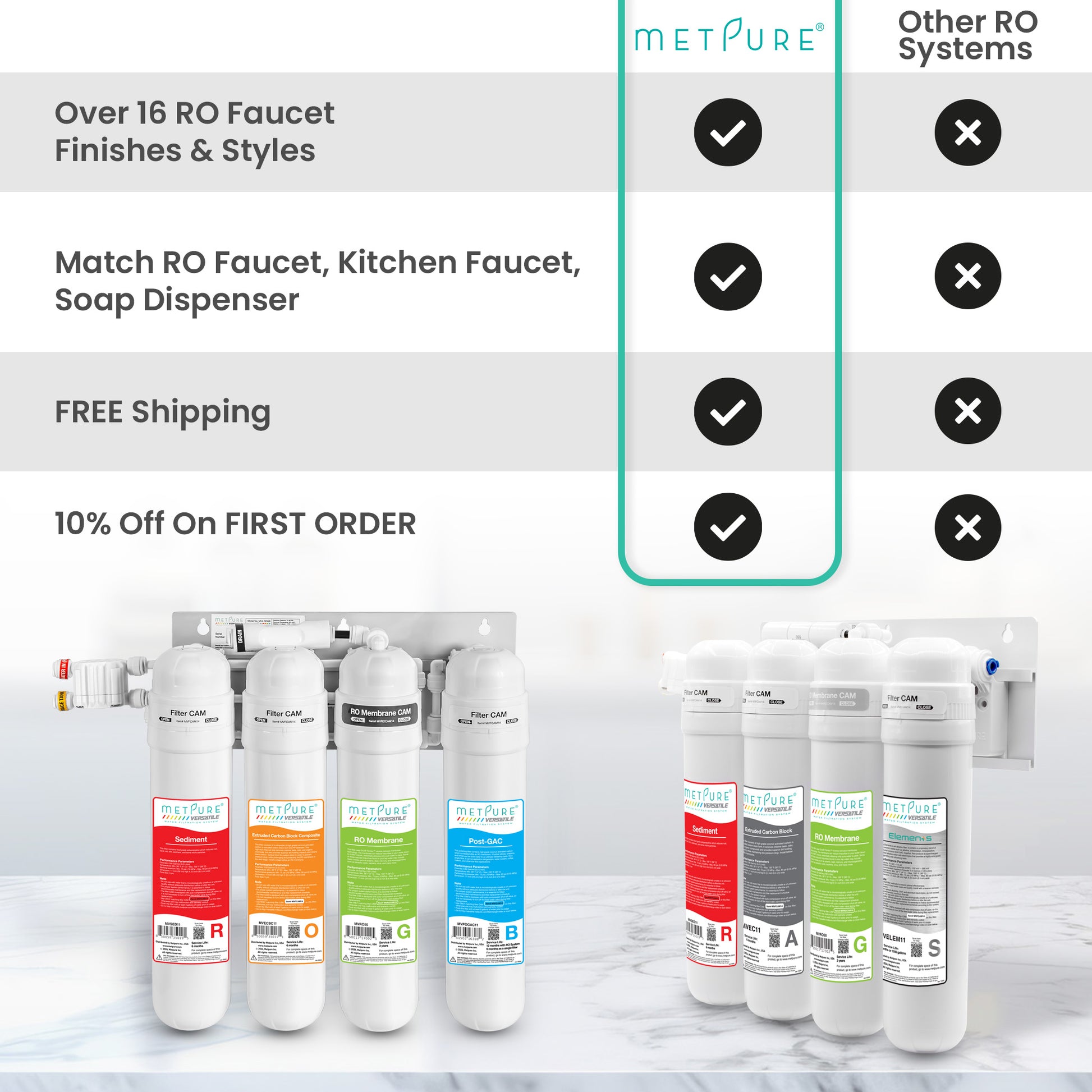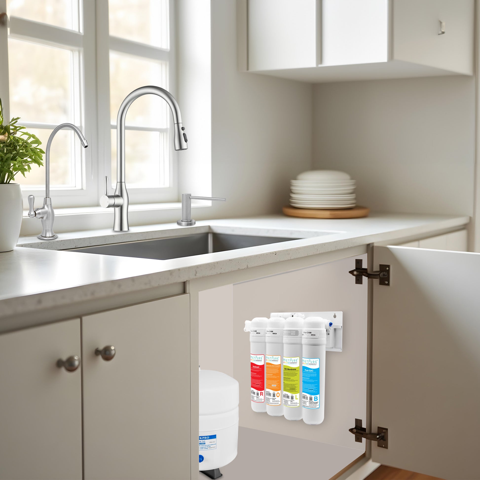 All systems deliver premium water purification through a 4-stage reverse osmosis water filtration process, removing up to 99% of contaminants like lead, mercury, chlorine, and more for clean, safe drinking water