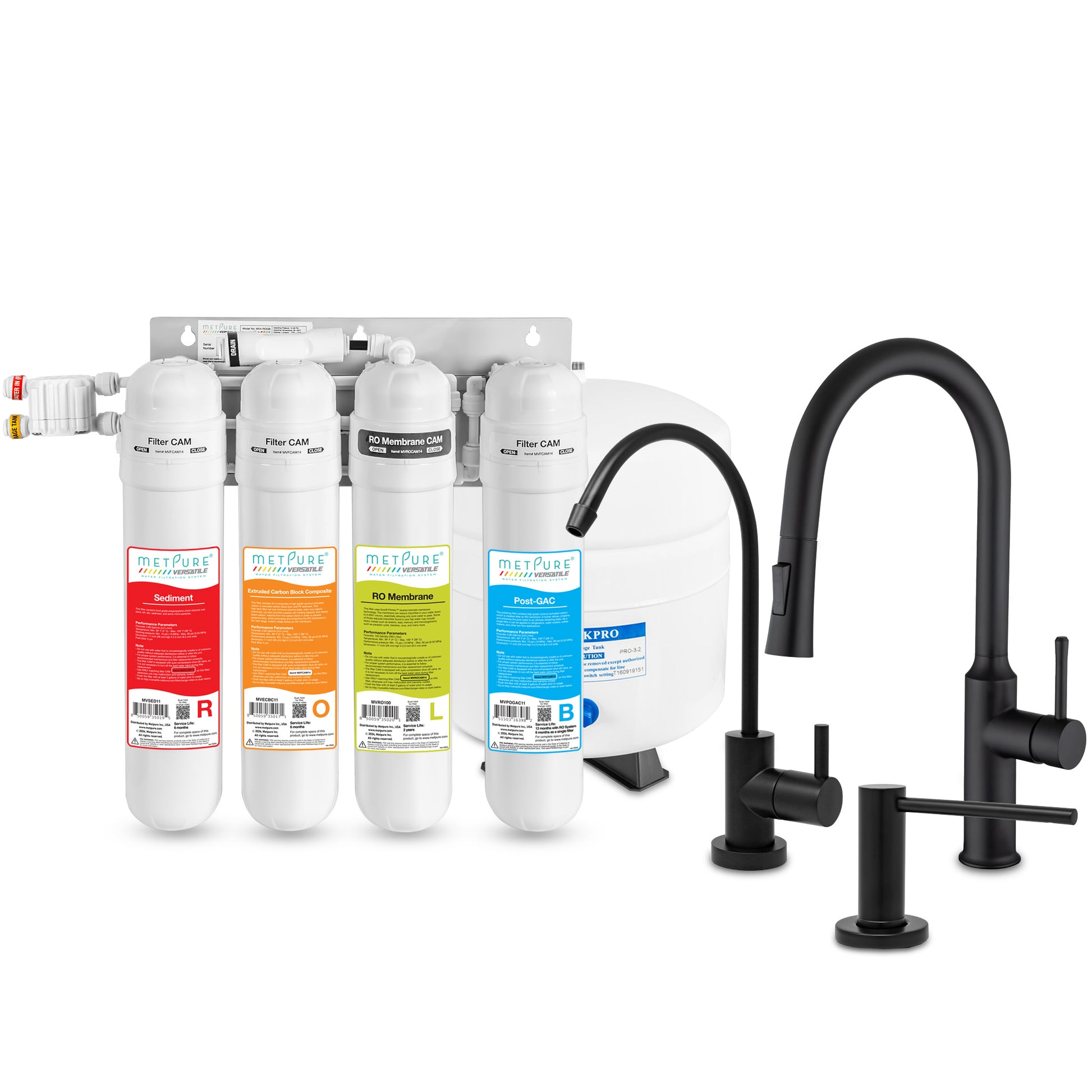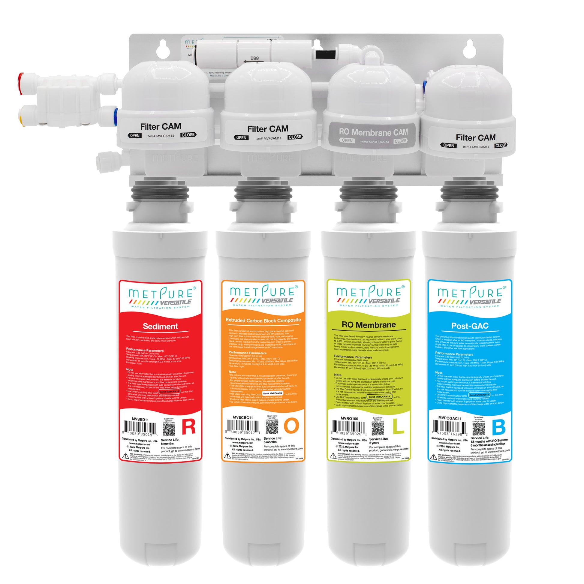 The Metpure Versatile quick-twist water filtration system is engineered from the ground up to deliver exceptional water purification, a low-profile footprint, and effortless installation and maintenance. Its open design allows for easy access and part replacement, while the quick-twist filter cartridges make changing filters fast and mess-free. The compact form factor fits neatly under your kitchen sink, providing powerful performance without taking up valuable space.