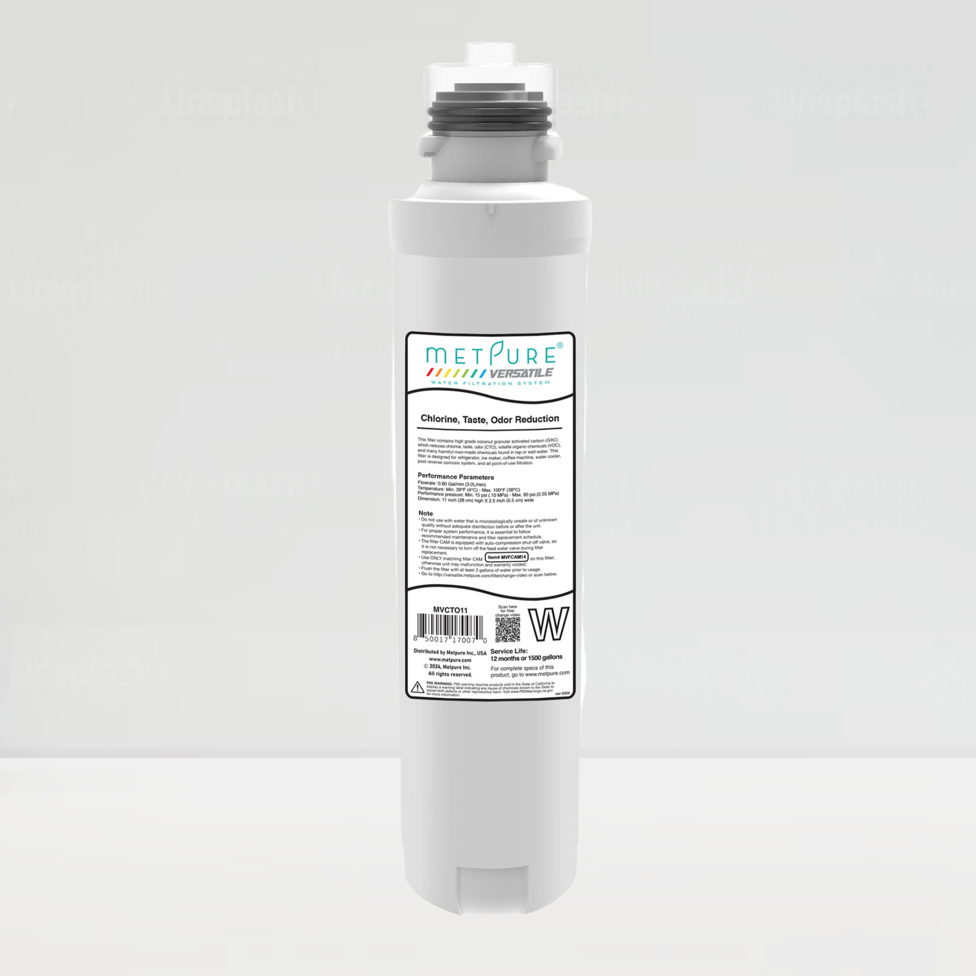 Metpure Versatile Inline CTO Cartridge (MVCTO11): Reduces chlorine, taste, and odor (CTO) in drinking water. Reduction Filter media - 100% virgin coconut granulated activated carbon.