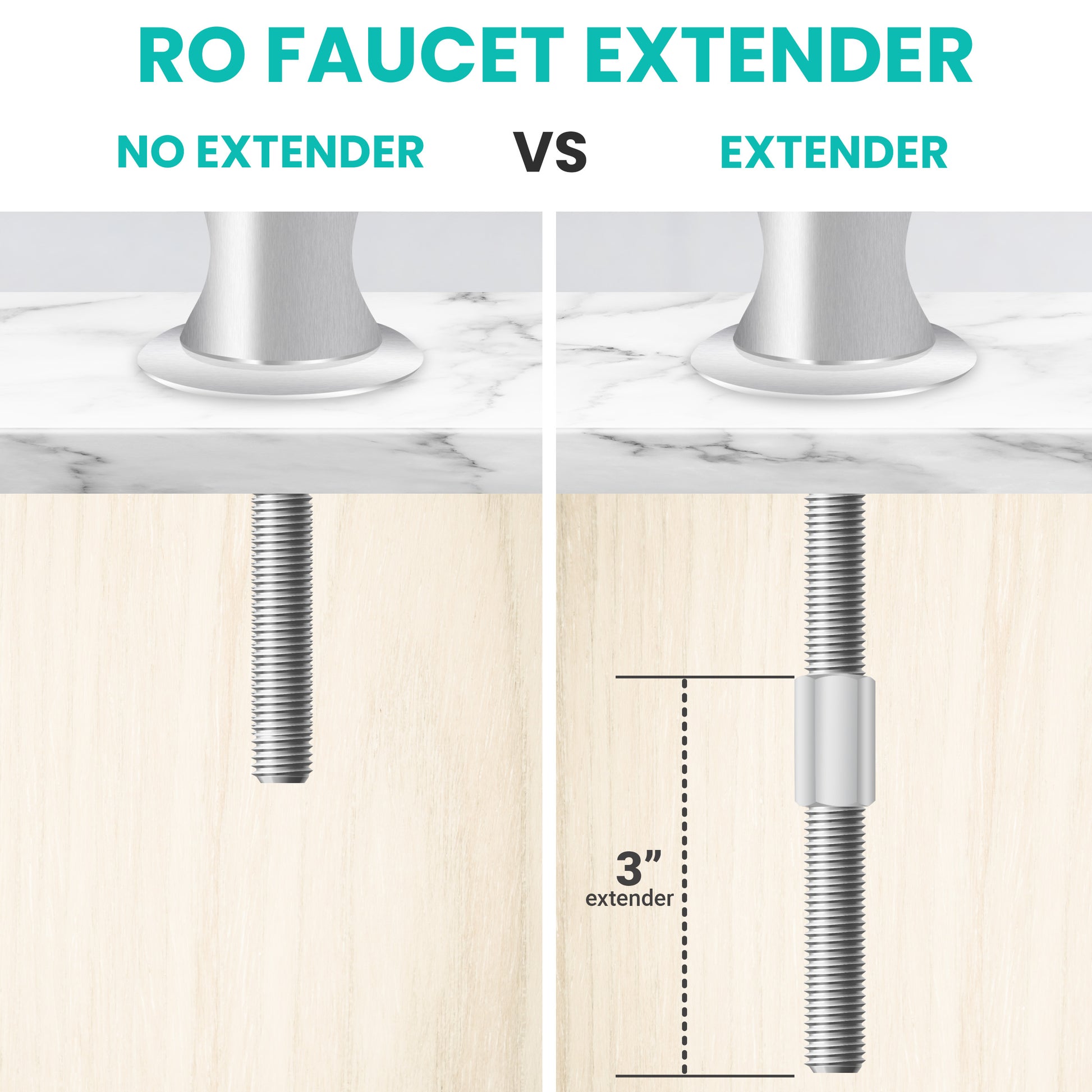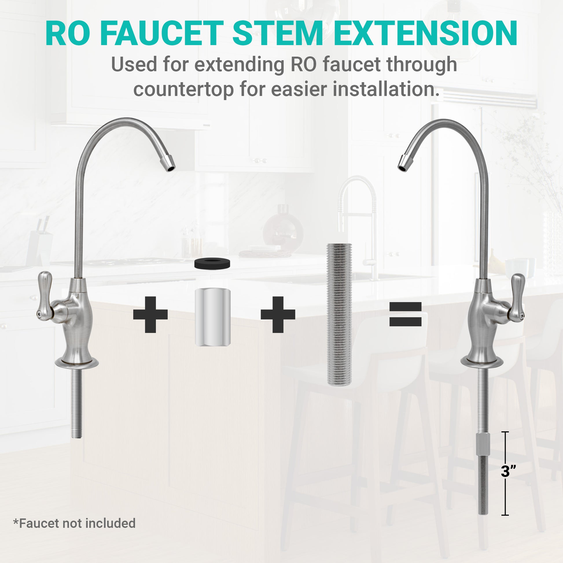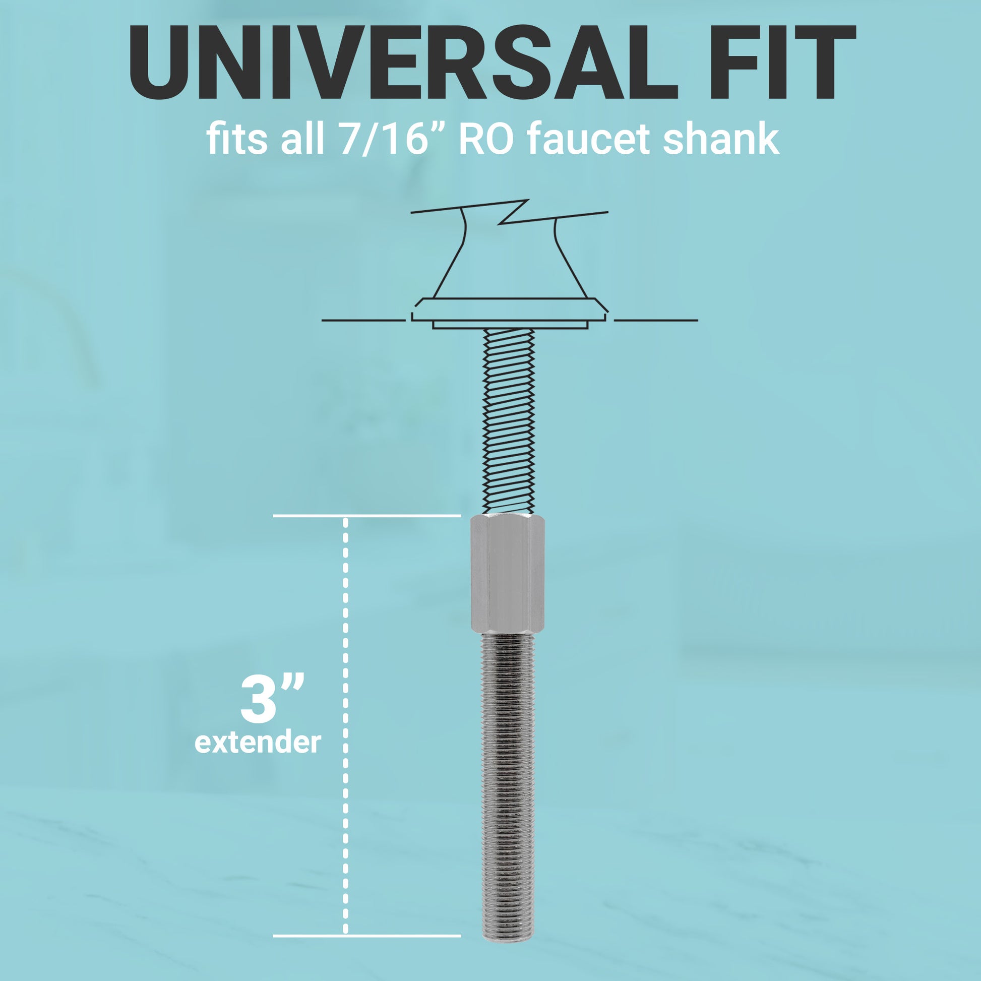 Lead free chrome plated RO faucet extender. Used for extending RO faucet through countertop for easier installation.